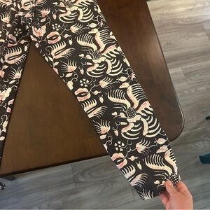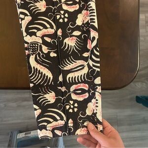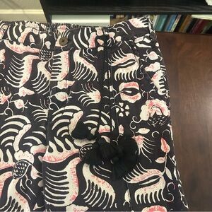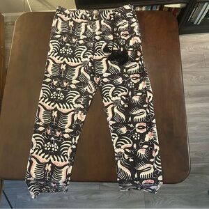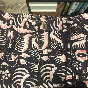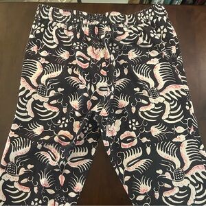 Figue Zulu Straight Leg Brown and Pink Print Cotton Cropped Pants Size M