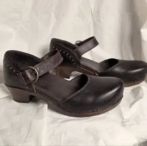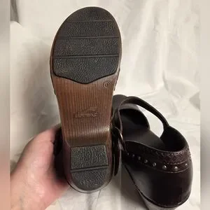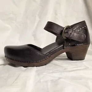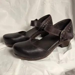 Dansko Makenna Leather Mary Jane Clog Brown Women's 40 Adjustable Strap Heel