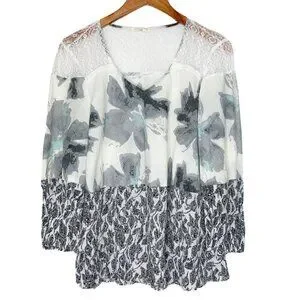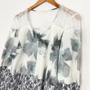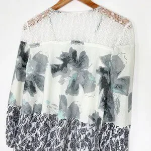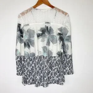 Mystree Gray Floral Top Womens Size Medium Lace Blouse Bohemian
