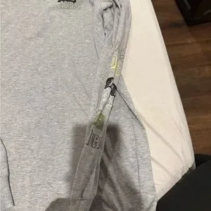 adidas Light Gray Hoodie with Green and Black Sleeve Logos