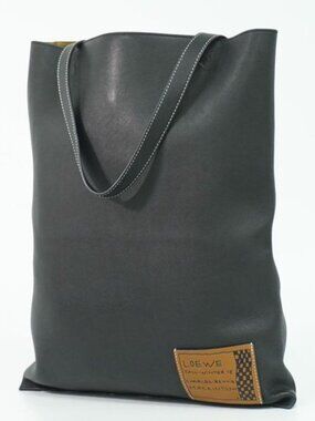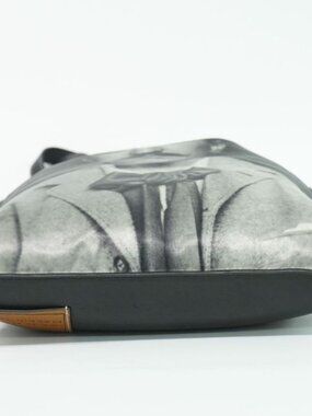 This is an authentic Loewe Charles Leni Mackintosh Collaboration tote bag in black canvas. The bag features a large portrait print design on the front, adding a striking visual element to this unique collaboration piece.