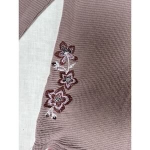 Aventura Organic Cotton embroidered mocha brown pullover waffle knit top Sz M