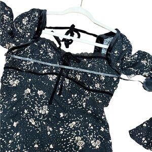 Charming Free People Tess mini dress with a romantic floral print, velvet lace trim, and a flattering sweetheart neckline. Perfect for date nights, parties, or any special occasion. Brand new with tags.