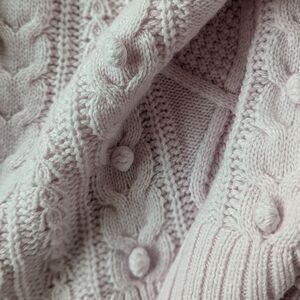 J. Crew Cable Knit Pom Pom Women's Lilac Azra Knit Lambswool Fisherman Sweater L