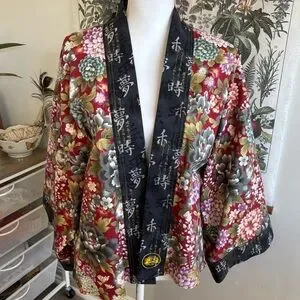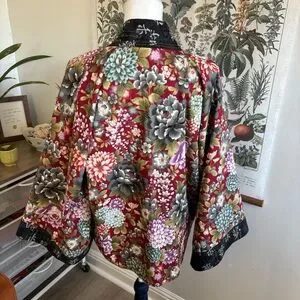 Elegant floral kimono jacket with a vibrant design. Perfect for adding a touch of sophistication to any outfit. So unique and great brand. Very rare find. Excellent condition, like new. 100% Cotton. Comes from a smoke free home.