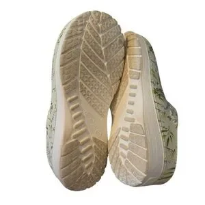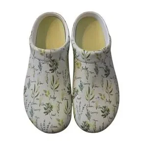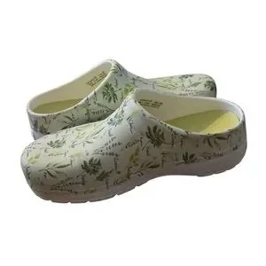 The Dansko Kane Molded Herbs Clogs in women's size 39 (US 8.5-9) are designed for gardening and outdoor activities. Featuring a comfortable clog style with a rubber upper material, these green shoes are both stylish and practical. The molded herbs design adds a fun touch, perfect for those who enjoy spending time in the garden. With the trusted Dansko brand and a theme focused on gardening, these clogs are a great choice for women who appreciate both fashion and function in their footwear.