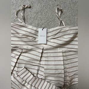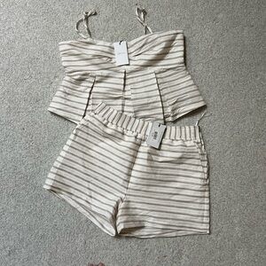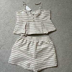 Greylin Two piece set-Shorts and Tank Top/Blouse. Size L. Cream and tan stripes. Features adjustable straps for a custom fit. Side zipper closure on both shorts and top. Double lined, beautiful quality. Retail on each piece is over $100. New with tags- bummed it was a little too tight on me.