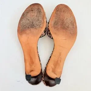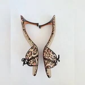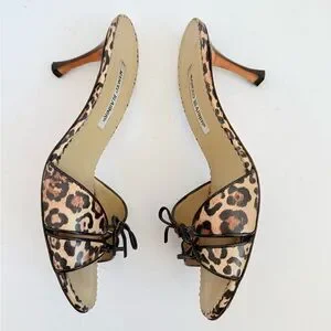 Manolo Blahnik Leopard leather Lace-Up Mule Kitten Heel Sandals EU 40 Y2K