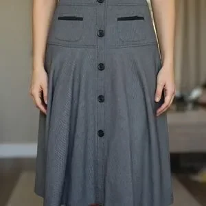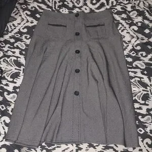 Larry Levine Gray Button-Front A-Line Skirt Bin 05