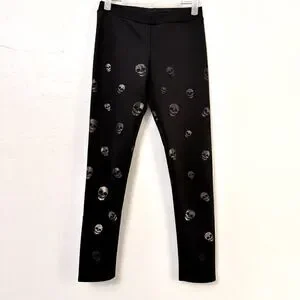 Topia Womens Leggings Athleisure Yoga Stretch High Waist Skull Print Black Small