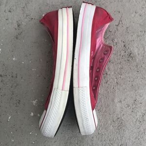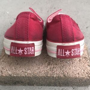 Super cute pink Converse but as you see from the pictures, I need a little bit of cleanup along the back heel. Color is a deep pink