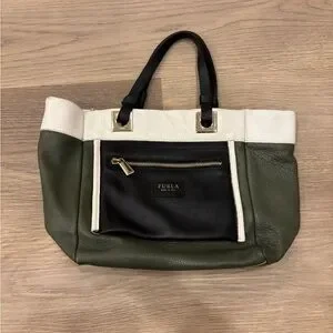 Fairly good condition. Definitely some signs of wear. Some pen markings in the inside of the bag. I tried to take pictures of all angles. Please see photos closely. Elevate your style with the Furla Women's Tote Bag. Crafted in elegant green and black leather, this bag is perfect for any occasion. The spacious interior and chic design make it a must-have accessory.