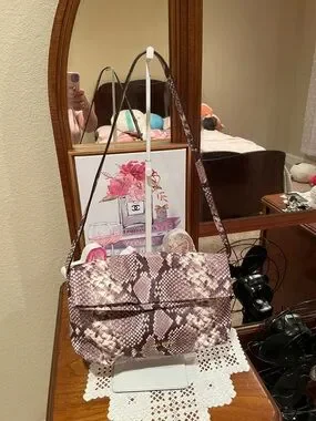 Michael Kors Brown and Tan Snake-Print Foldover Shoulder bag