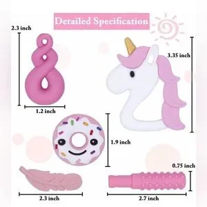 ★CHEWIES FOR KIDS SENSORY - Our sensory chew necklaces set includes many lovely pieces, they are mace, donut, feather, unicorn and digit-8 knot. There always exist an appropriate chewy necklace sensory waiting for you. Ages 3+years plus only.