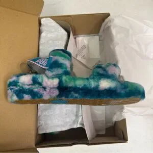 New Ugg Oh Yeah Marble Slide Slipper Sandals Aquatic Blue