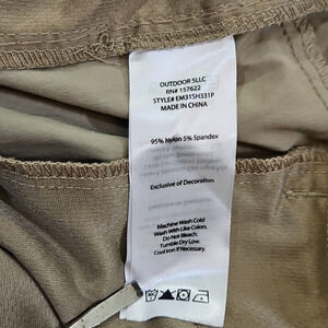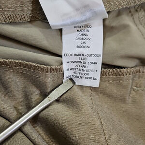 For sale, these Eddie Bauer Men's Size 40 Cargo Shorts. Designed for durability and comfort, these shorts feature a practical 10-inch inseam, making them ideal for hiking, camping, or a casual day out. The brown microfiber nylon fabric provides a lightweight feel, perfect for the warmer spring and summer months, while the cargo pocket design ensures your essentials are always within easy reach. With a mid-rise waist and flat front style, these shorts offer a regular fit that's both flattering and versatile.