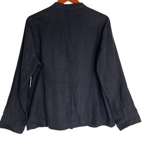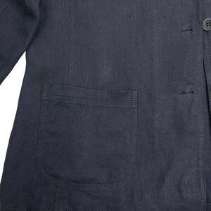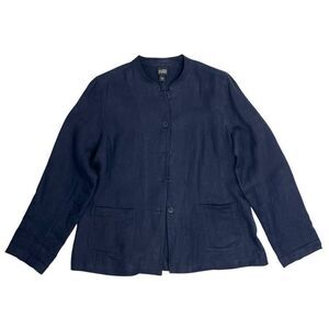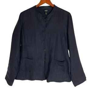 Eileen Fisher Womens Linen Mandarin Collar Button Front Coat Navy Blue Medium