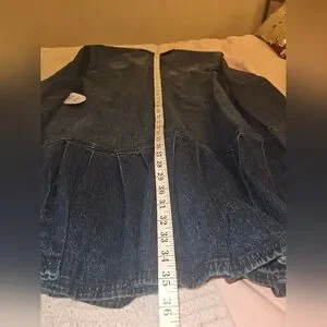 Classic denim button-down dress with a playful ruffle hem. Soft blue denim fabric for everyday wear. Long sleeves and front pockets for functional style. Pairs easily with boots or sneakers for a casual look.