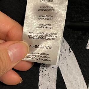 NHL Los Angeles Kings crewneck sweater. Black fabric with bold white team graphics. Pullover style with front pouch pocket. Classic game-day logo across chest.