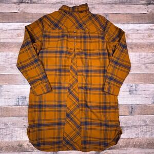 Duluth Trading Co Women Shirt Dress Large Yellow Plaid Flannel Button Back
