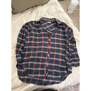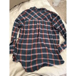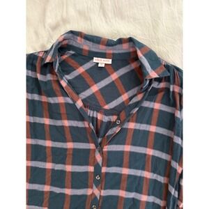 Knox Rose Plaid Button Down Shirt Tunic Teal Brown Pink Relaxed Fit XL