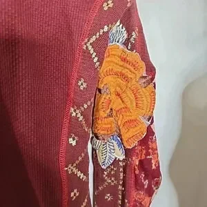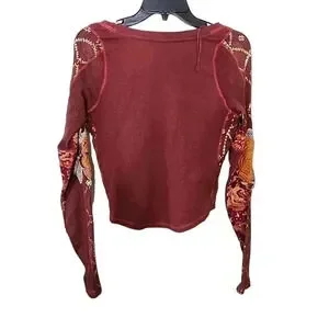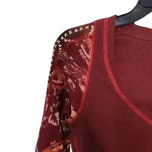 Free People Amara V-Neck Thermal Top in Garnet Grotto Size S Pullover Blouse