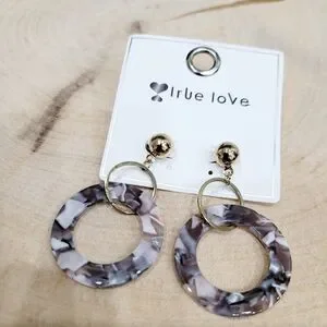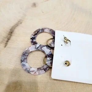 Brand New Gold Tone Grey Hoops Dangle Earrings