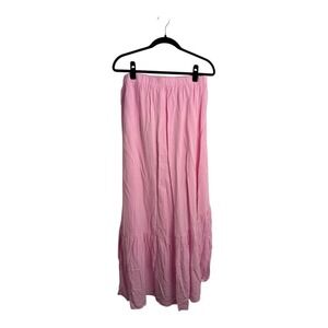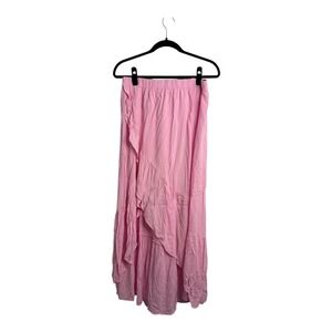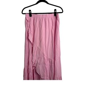 NWT Halara Light Pink Ruffle Split Front Maxi Skirt Elastic Waist Size Large