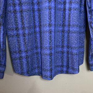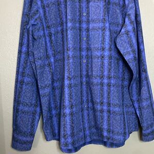 Bugatchi Uomo Dark Blue Medium Blue Plaid Paisley Print Button Down Dress Shirt classic fit