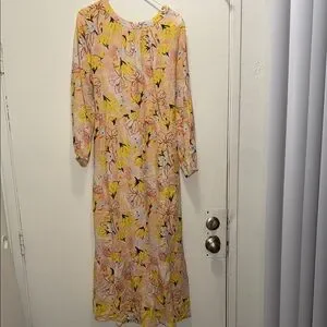 🌼 Style & Co Yellow Floral Midi Dress – Size L – Linen Blend Boho Dress