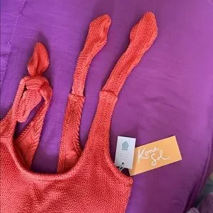 KONA SOL Pucker Textured 1-Pc Swimsuit "Rust" XS New