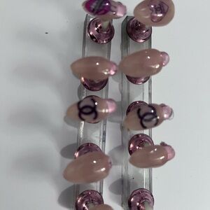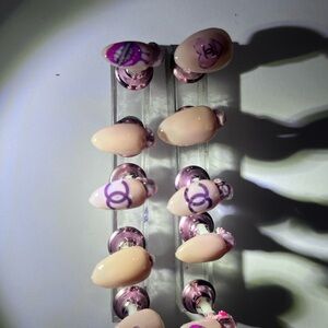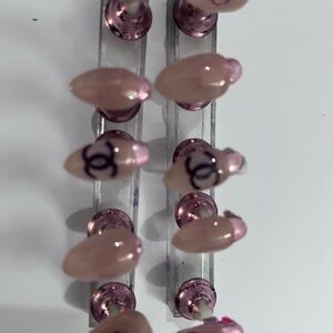 CHANEL Pale Pink Press-On Nails with Purple Logo Accents