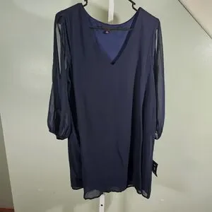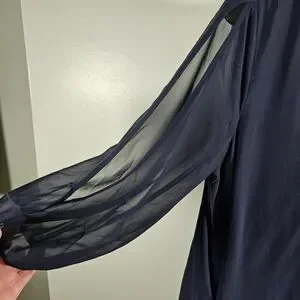 The Lulus Women's Navy Blue Shifting Dears Long Sleeve Shift Dress in size medium is a stylish and versatile piece perfect for various occasions. Made of polyester chiffon, this dress features a V-neckline, long sleeves with slit details, and a pullover closure. The dress falls above the knee and is accented with cold shoulder details, giving it a sexy and trendy look. Ideal for weddings, parties, or casual outings, this dress is a must-have addition to any woman's wardrobe, suitable for all seasons.