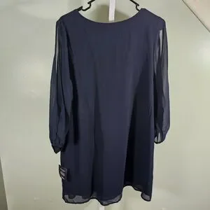 Lulus Women's Navy Blue Shifting Dears Long Sleeve Shift Dress Size Medium