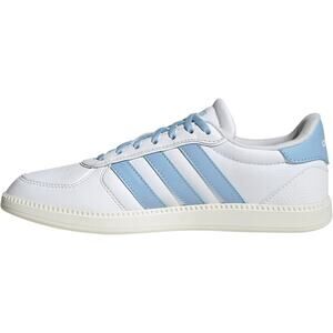 The adidas Breaknet Sleek is a retro-inspired lifestyle sneaker with a sleek, streamlined silhouette. It features a durable faux-leather (synthetic) upper with perforations for breathability, a cushioned Cloudfoam or memory-foam insole for all-day comfort, and a classic rubber cupsole that offers reliable traction. Subtle platform styling gives a modern edge, while iconic 3‑Stripe branding completes the look in the White/Blue/Off‑White colorway