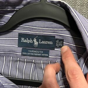 Ralph Lauren Yarmouth Mens 16.5 34/35 Blue White Striped Pinpoint Oxford Shirt