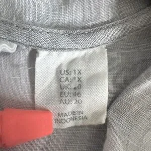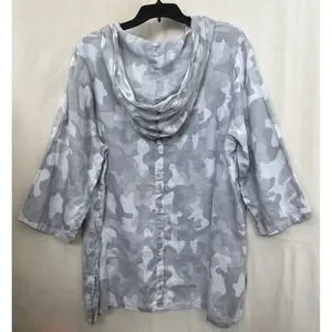 C&C California Beachy Grey Camo 100% Linen Hooded Tunic Plus Sz. 1X Button Back