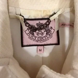 Juicy Couture Wool Blend Coat Size Medium Ivory Belted Button Front Classic