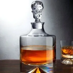 NWOB Nude Shade Whisky Decanter Skull Shaped Stopper Lead Free Crystal 42oz
