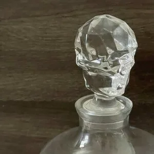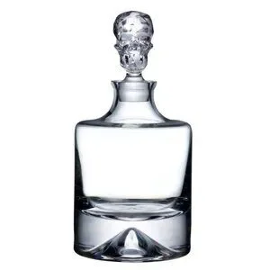 Crowned with a sculptural skull-shaped stopper, this handmade crystalline whisky bottle from Nude is brand new and unused. Clean inside and out, ready to use.