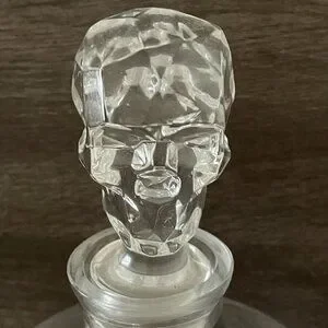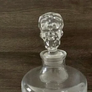 NWOB Nude Shade Crystal Whisky Decanter Skull Shaped Stopper Blown Glass 42oz Retail Price $195.00