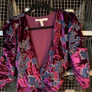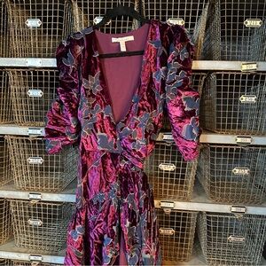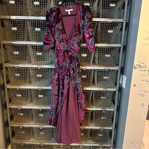 Hutch Plum Velvet Floral Wrap Dress High Low Midi Romantic Holiday Wedding Guest