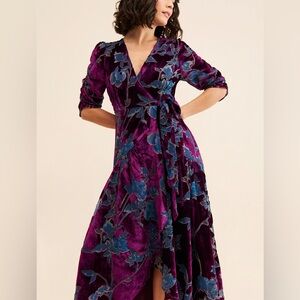 Hutch Violette Plum Floral Velvet Maxi Wrap Dress 38129