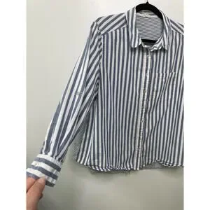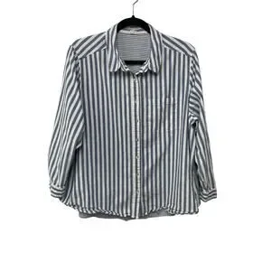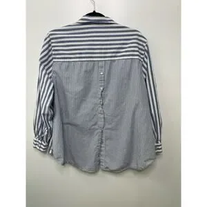 Jane and Delancey Striped Long Sleeve Button Down Shirt Cotton Blue Women's 1X