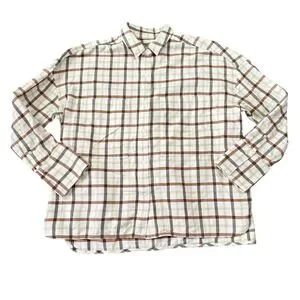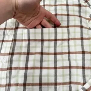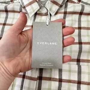 Everlane Oversized Plaid Flannel Shirt Cream Brown Sage Green Women's Size XS