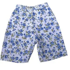 25x9 Vintage Erika Floral Denim Bermuda Shorts High Waist YKK Zip Fly Pockets