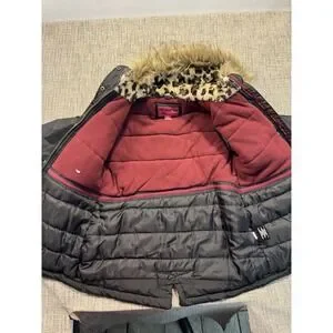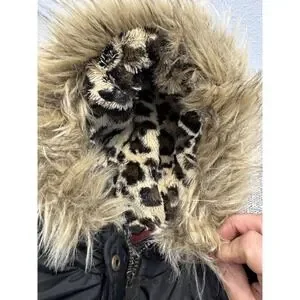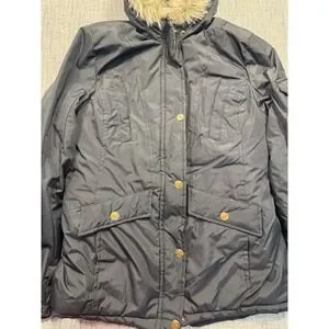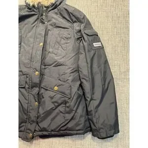 London Fog Down Parka Jacket Womens 10/12 Kids Puffer Hooded Faux Fur