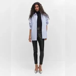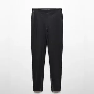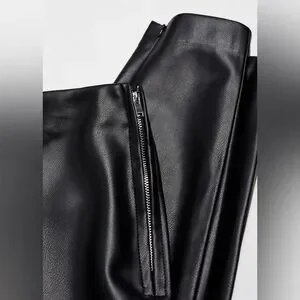 Leather effect. Crop design. Skinny fit. High-rise. Zipper closure hem slits. Elastic waistband. Side zip fastening. Available in Plus size. Office looks. Fitted design. Welt pocket on the back.