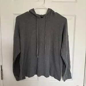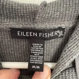 Eileen Fisher Gray Waffle Knit Hooded Top Size M Cozy Minimalist