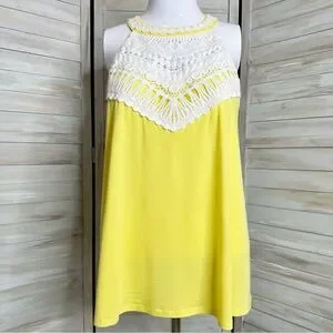 Lilly Pulitzer Dawn halter top Small pineapple juice yellow + white crochet lace